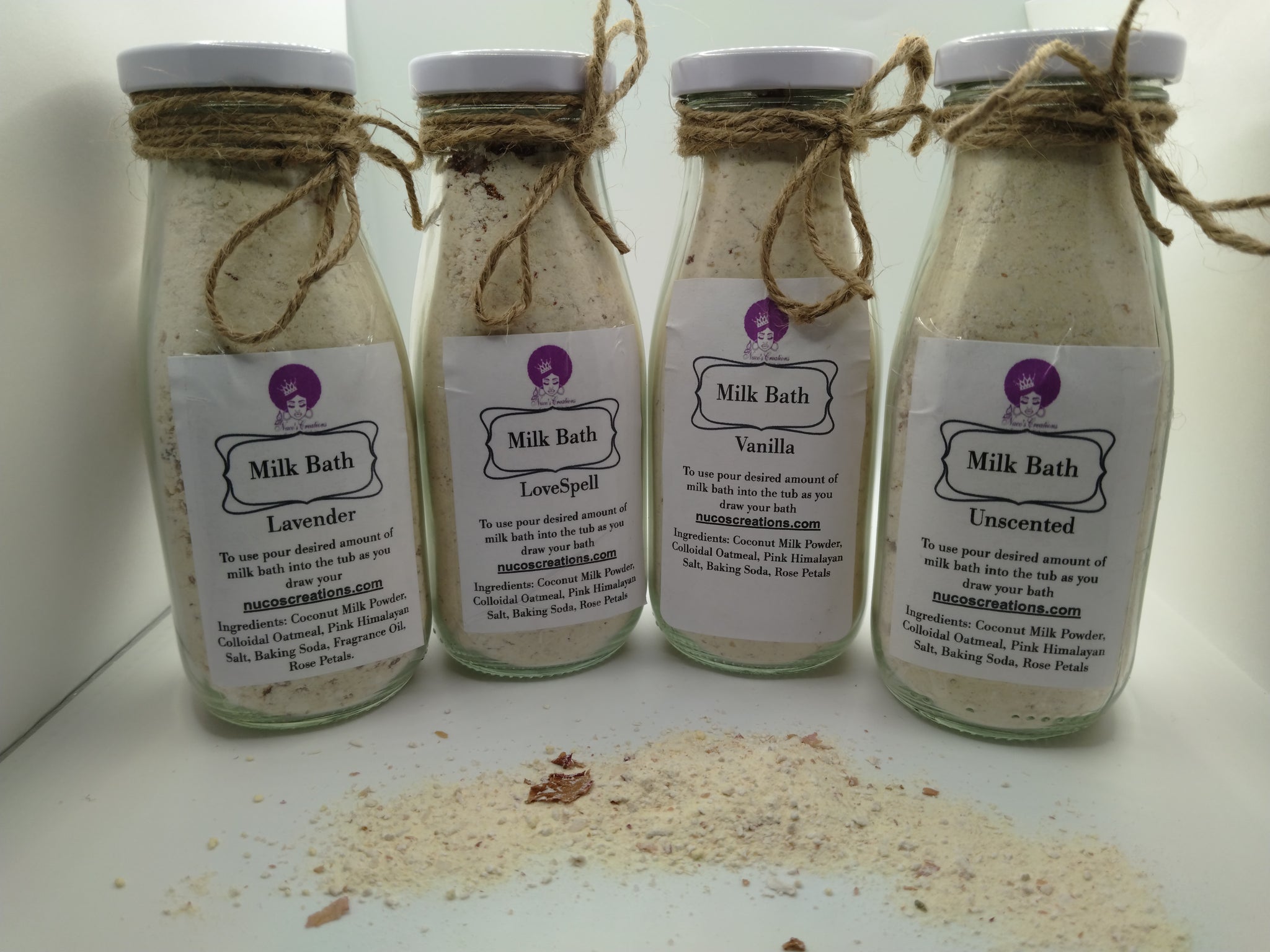 Meet The Ingredients: Coconut Milk Powder, Colloidal Oatmeal, Pink Himalayan Salt, Baking Soda, Fragrance Oil, Rose Petals.